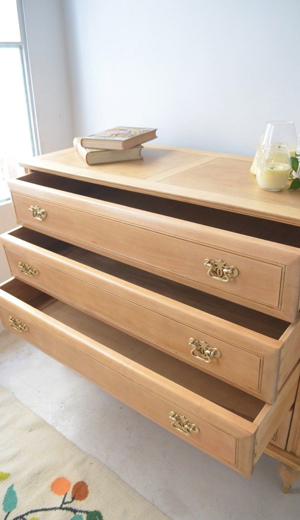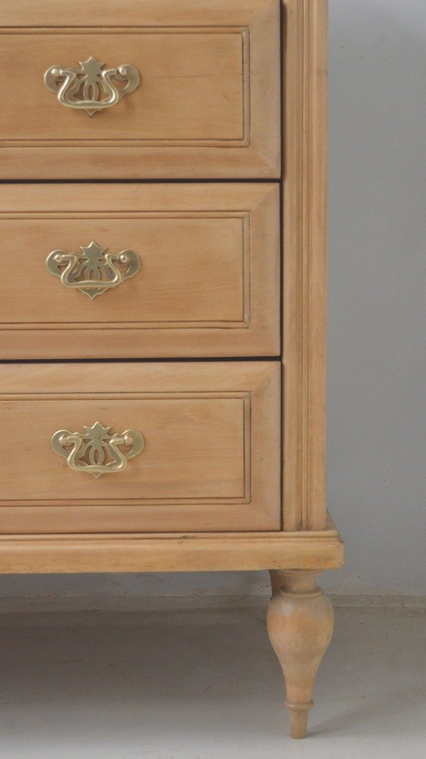 Imponente cajonera recuperada en madera maciza de guatambú. Totalmente lavada, interiores impecables, tiradores de bronce originales y protegida con laca satinada.